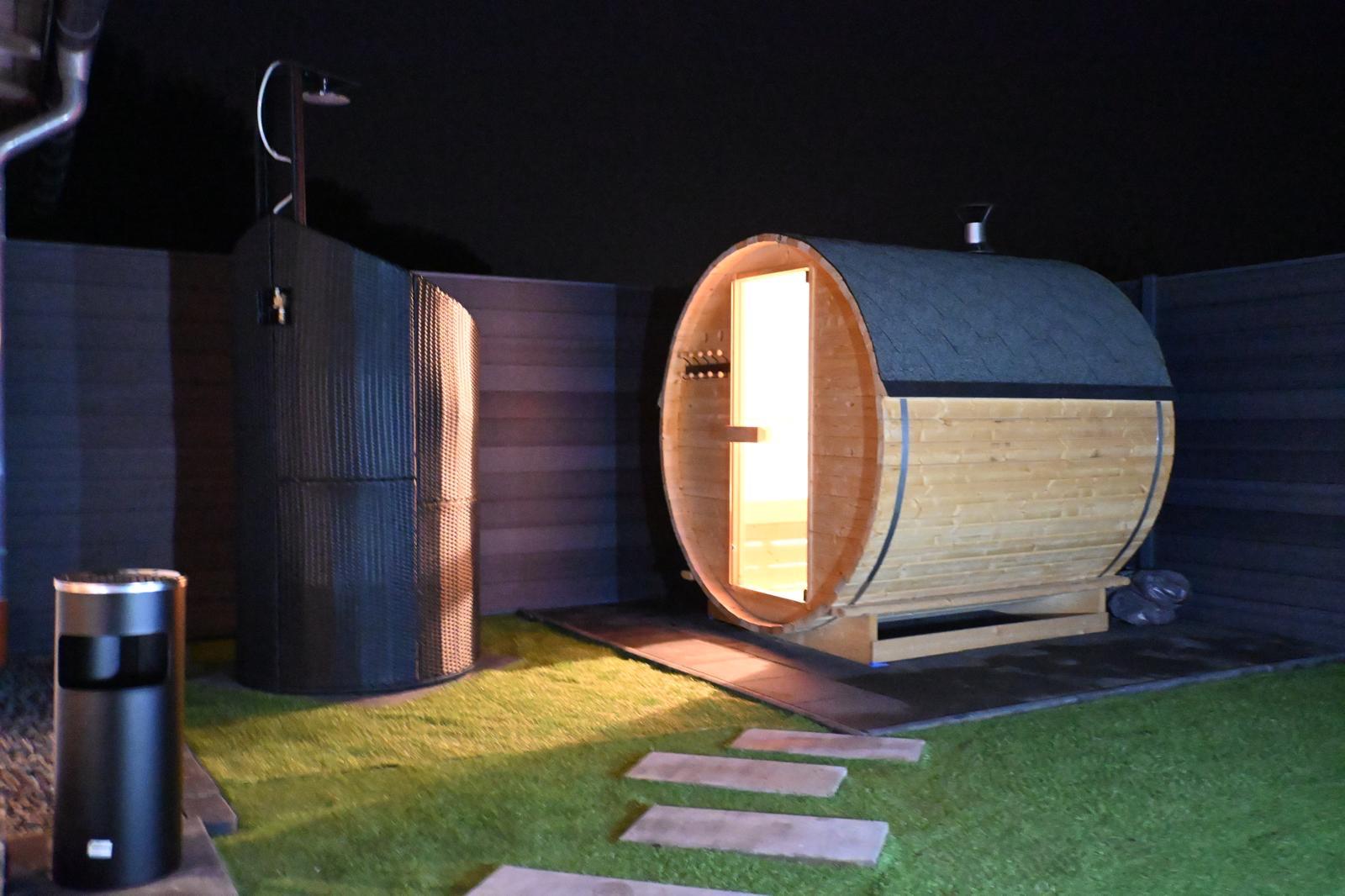 € 220Die Holzofen-Sauna im Außenbereich ist nicht enthalten